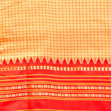 ₹13,000.00Original price was: ₹13,000.00.₹9,000.00Current price is: ₹9,000.00.A beautiful Narayanpet handloom saree featuring a brick red checked body, elegant peacock blue pallu, and classic orange-gold temple zari border. Lightweight, traditional, and perfect for festive occasions, weddings, and cultural celebrations.