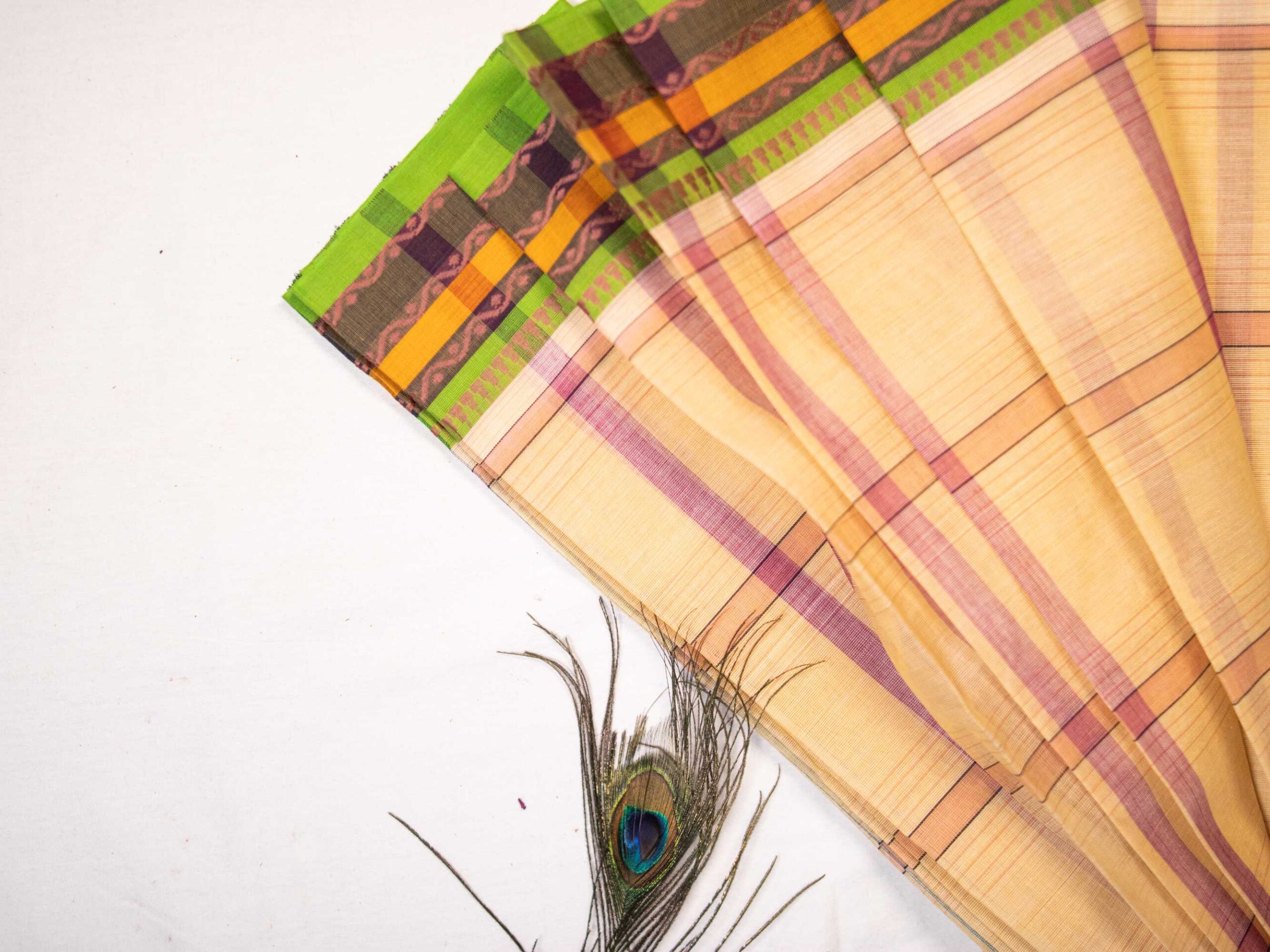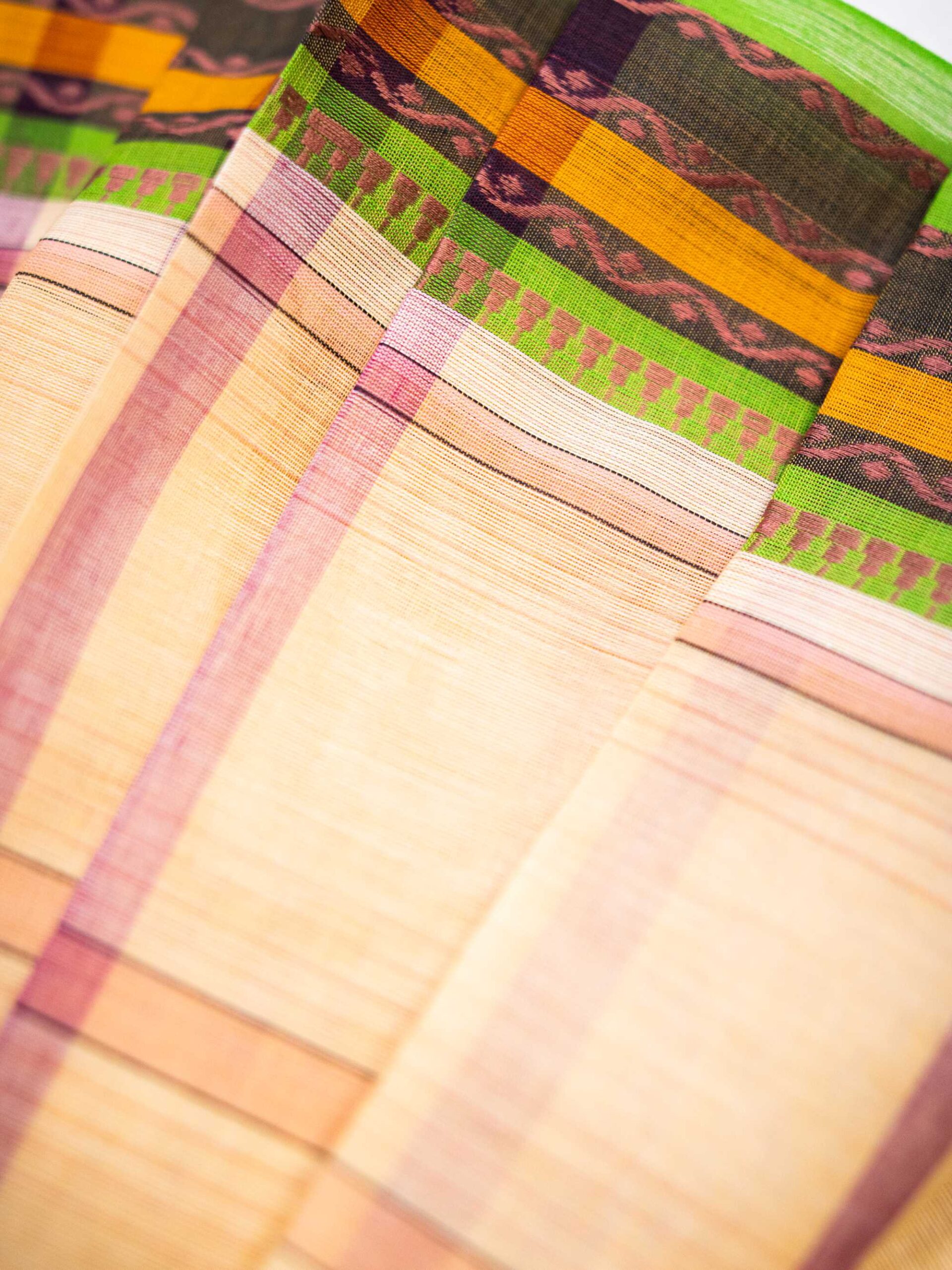 Cream with Multicoloured Border | Khadi Cotton Saree | Without Blouse