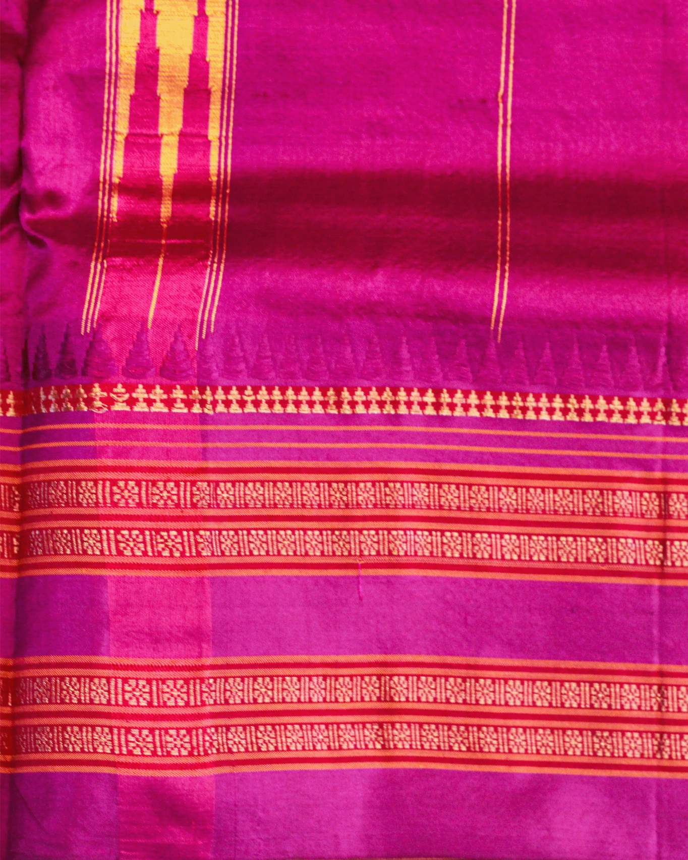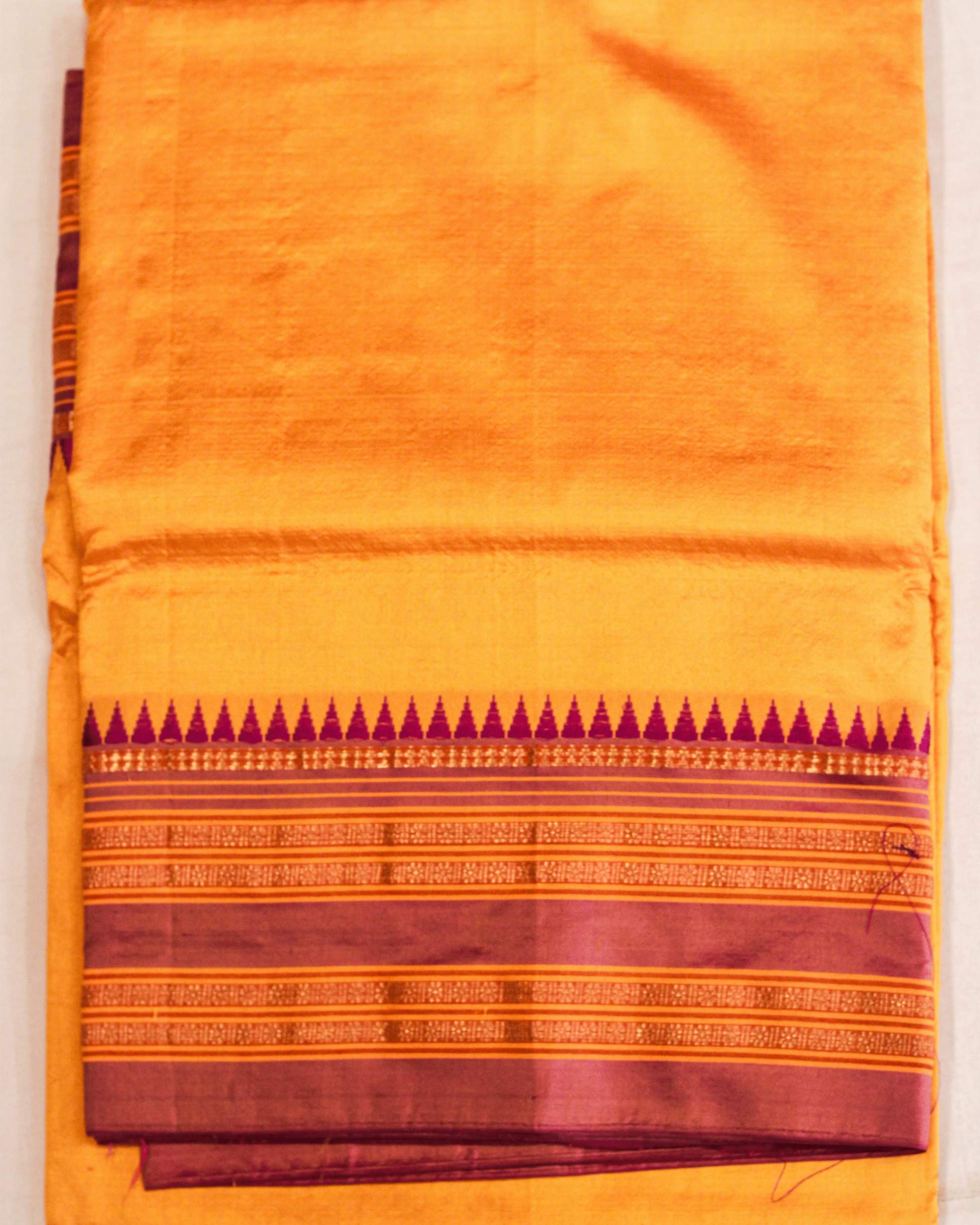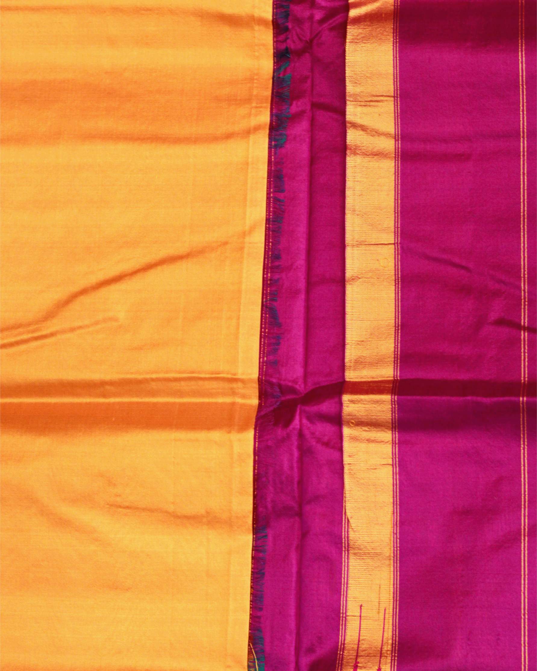 Golden Yellow and Dark Pink Pure Silk Saree with Rich Zari Border
