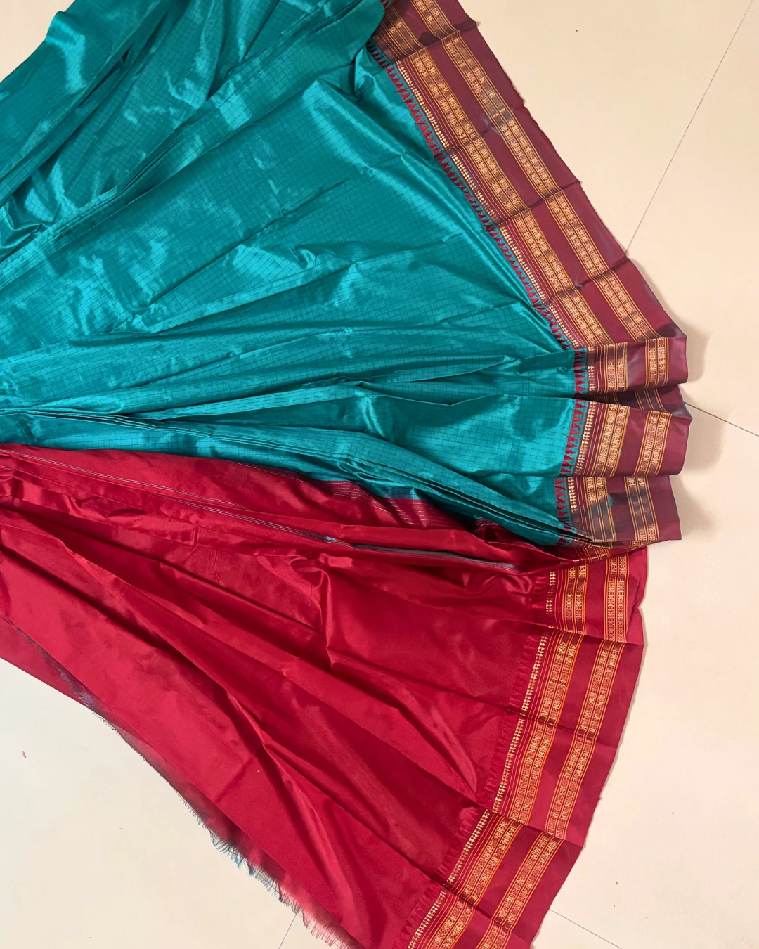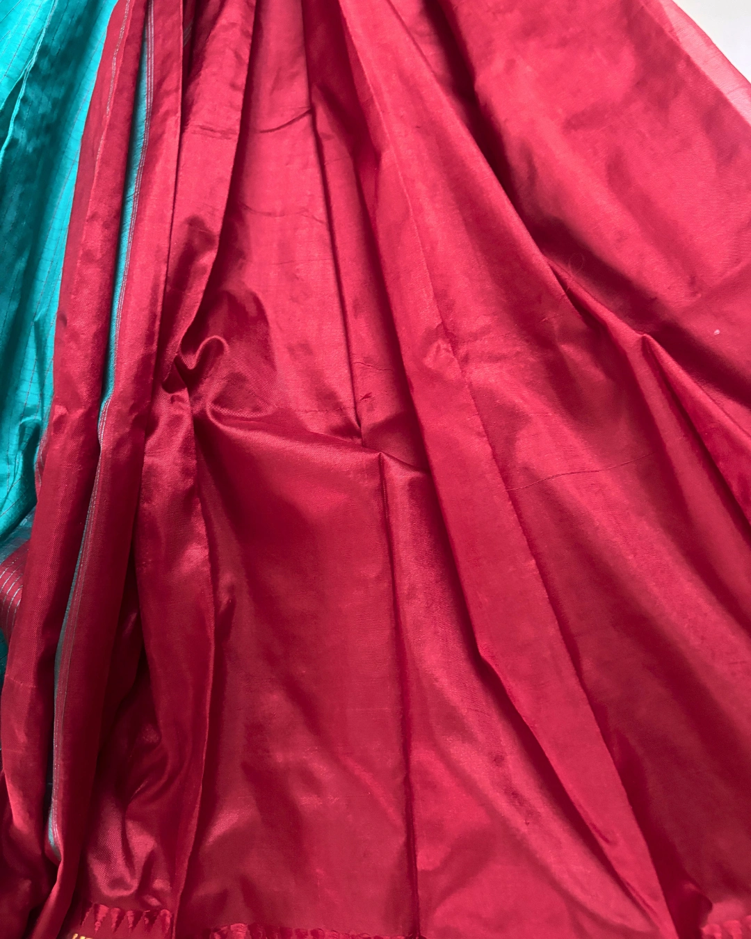 Teal & Deep Magenta Narayanpet Handloom Silk Saree with Zari Temple Border