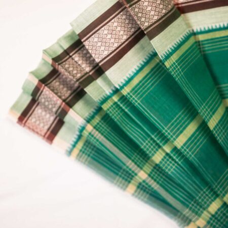 Narayanpet Handloom Pure Silk Saree – Green Pink Checks with Temple Zari Border