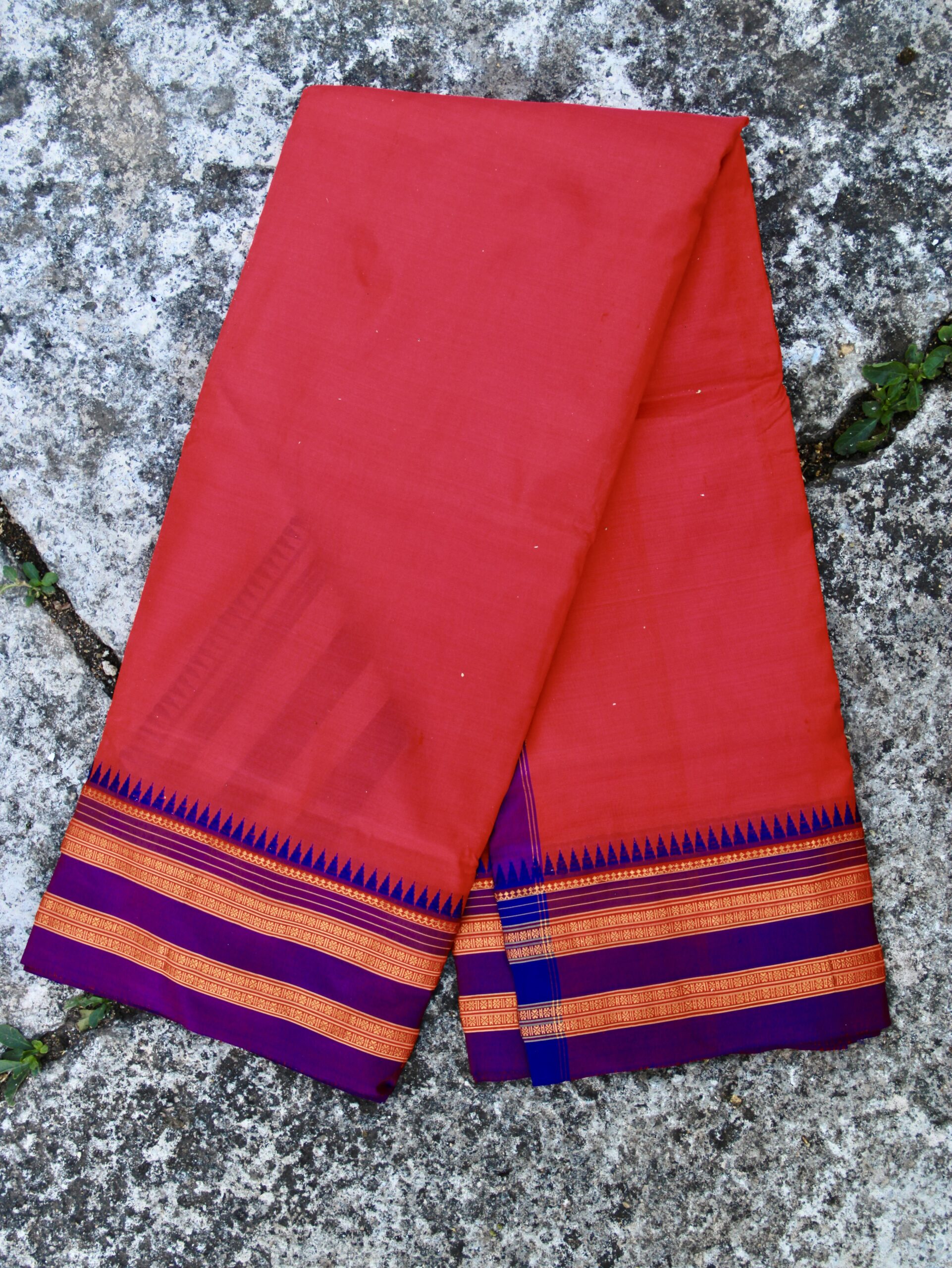 Narayanpet Handloom Saree – Royal Purple Body with Red Pallu & Contrast Zari Border