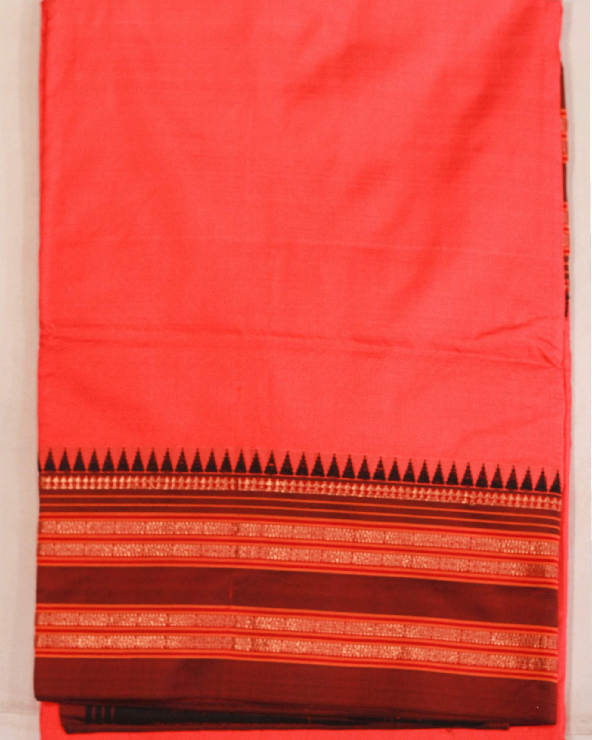 Narayanpet silk sarees are admired for their bold color contrasts, lustrous finish, and the perfect harmony between South Indian and Maharashtrian weaving influences.