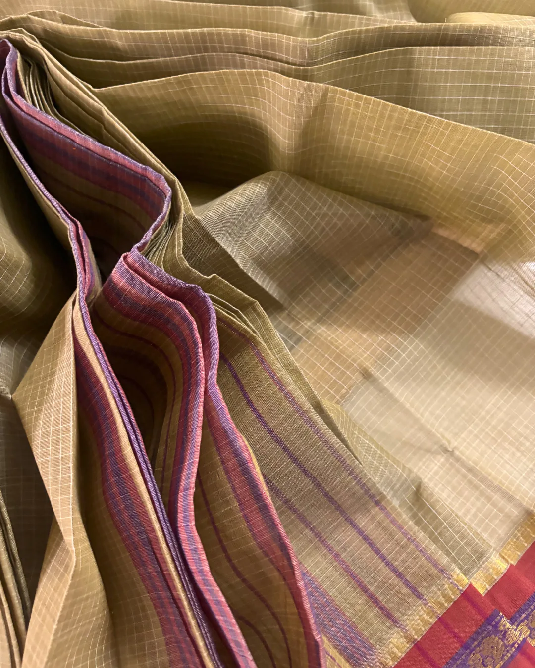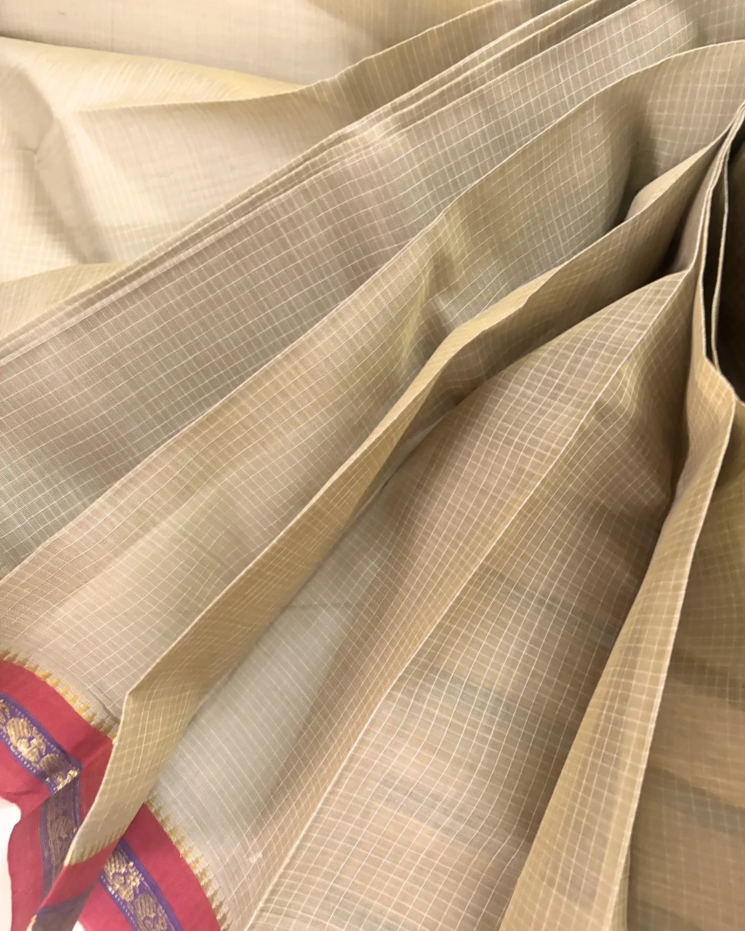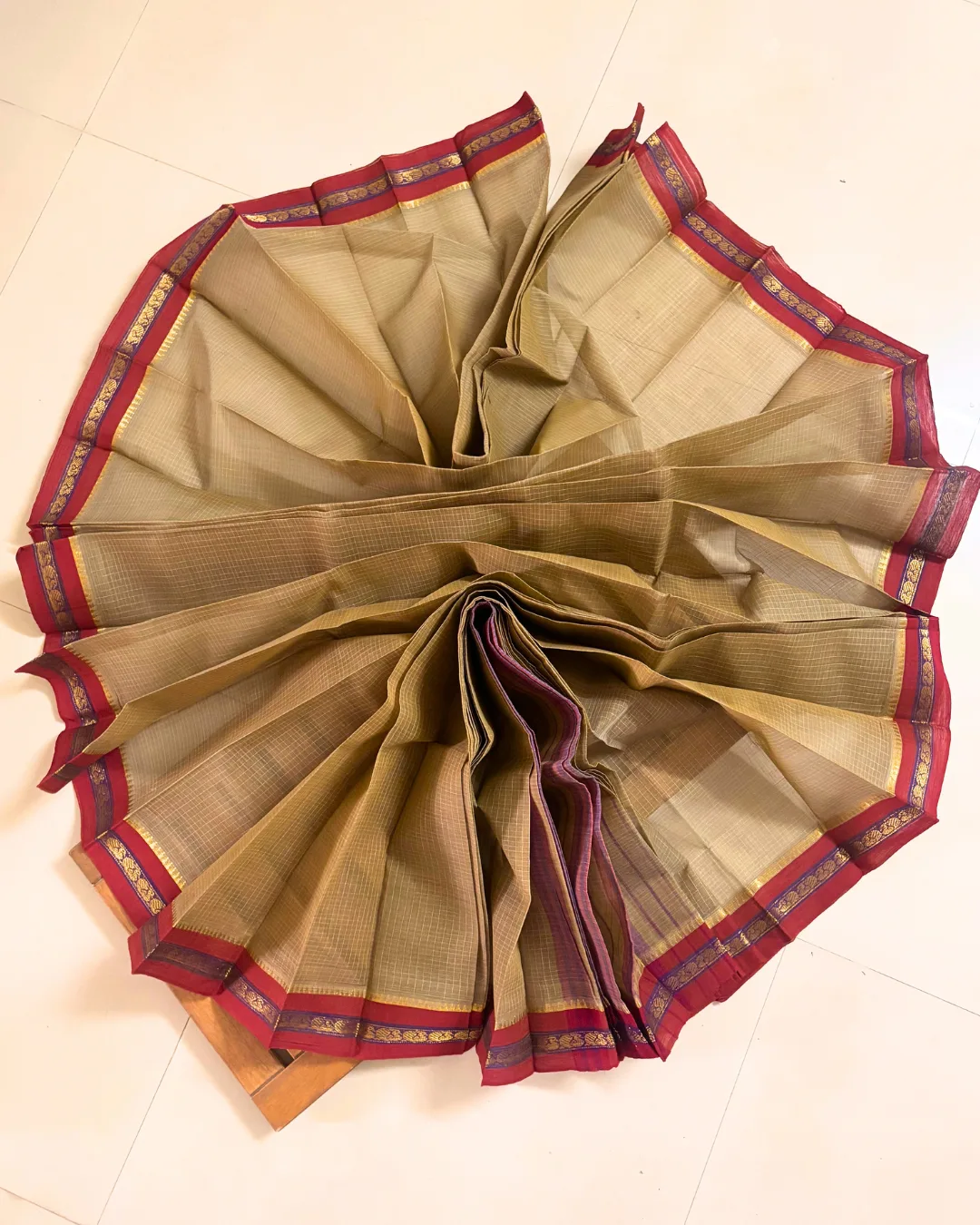 Sand Beige & Crimson Red Border Narayanpet Handloom Cotton Saree